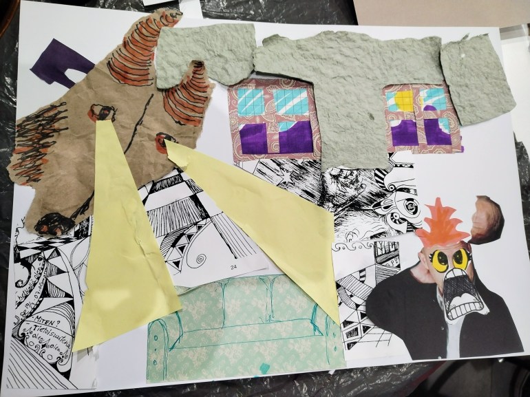 - Express thoughts and feelings visually using intuitive collage and mixed media.